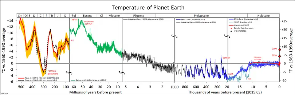- ^ Crowley, T.J.; Hyde, W.T.; Peltier, W.R. (2001). "CO 2 levels required for deglaciation of a 'near-snowball' Earth". Geophysical Research Letters. 28 (2): 283–6. Bibcode:2001GeoRL..28..283C. doi:10.1029/2000GL011836.