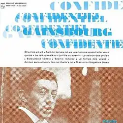 Gainsbourg Confidentiel is the fifth studio album by French musician Serge Gainsbourg,[1] released in 1964. It features a minimalistic approach to jazz, with only a double bass and an electric guitar.