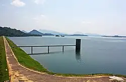 The Gal Oya Dam (also known as Inginiyagala Dam) is an embankment dam in the Uva Province of Sri Lanka. The dam creates one of the largest reservoirs in the country, the Gal Oya Reservoir. Water from the reservoir is used primarily for irrigation in the Uva and Eastern provinces, in addition to powering a small hydroelectric power station. Construction of the dam and reservoir began in August 24, 1949, completing four years later in 1953.[1]