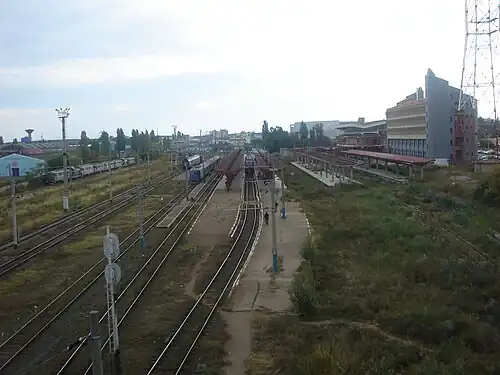 Galați is a railway station located in Galați, Galați County, Romania. The station is located on the Galați – Bucharest, Galați – Giurgiulești, Galați – Bârlad, and Galați – Tecuci lines.