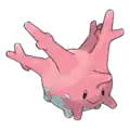 Galarian Corsola is a species of fictional creatures called Pokémon created for the Pokémon media franchise. Developed by Game Freak and published by Nintendo, the Japanese franchise began in 1996 with the video games Pokémon Red and Green for the Game Boy, which were later released in North America as Pokémon Red and Blue in 1998.[1] In these games and their sequels, the player assumes the role of a Trainer whose goal is to capture and use the creatures' special abilities to combat other Pokémon. Some Pokémon can transform into stronger species through a process called evolution via various means, such as exposure to specific items.[2] Each Pokémon have one or two elemental types, which define its advantages and disadvantages when battling other Pokémon.[3] A major goal in each game is to complete the Pokédex, a comprehensive Pokémon encyclopedia, by capturing, evolving, and trading with other Trainers to obtain individuals from all Pokémon species.[2]