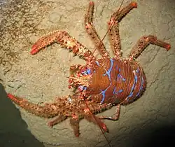 Galathea strigosa is a species of squat lobster in the family Galatheidae.[2] It is found in the northeast Atlantic Ocean, from the North Cape to the Canary Islands, and in the Mediterranean Sea and Red Sea.[3] It is edible, but not fished commercially.[4] It is the largest squat lobster in the northeast Atlantic, reaching a length of 90 millimetres (3.5 in), or a carapace length of 53 mm (2.1 in),[3] and is easily identified by the transverse blue stripes across the body.[4]