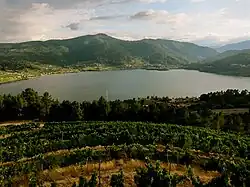The Valdeorras DO is the easternmost wine region of Galicia that is dominated by the red Garnacha Tintorera and the white Palomino grape. Many of the vineyards are planted in terraces on the steep slate hillsides that flank the Sil river.[2] Prior to the phylloxera epidemic of the 19th century, the indigenous Godello vine was heavily planted and is only just recently starting to make a comeback in the region. The Mencía grape is also starting to gain ground due to the fruity and easy drinking red wines that it produces.[1]
