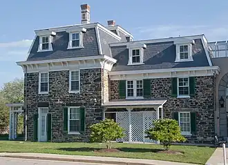 Gallagher Mansion and Outbuilding is a historic home located at Baltimore, Maryland, United States. It was originally built about 1854 as an Italianate villa, and was subsequently enlarged and embellished in the Second Empire style of the later mid century. It features walls built of local rough fieldstone and rubble and a mansard roof covered with decorative slate. The outbuilding is a two-story rectangular wood carriage house with a hip roof and cupola.[2]