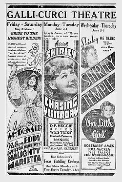 In 1922 he had the theater built, complete with a player piano. He put the dealership on the ground floor, the newspaper's editorial offices upstairs and its printing press downstairs. The remaining office space was rented to the Delaware and Northern Railroad. He offered to name the theater after Amelita Galli-Curci, whose Sul Monte estate was in nearby Highmount, if she sang at opening night in 1922, which she did, closing with "Home! Sweet Home!".[1]