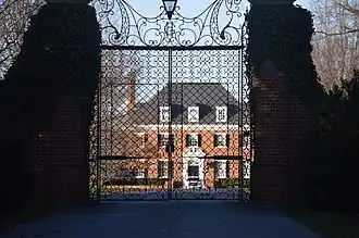 Gallison Hall is a historic home located near Charlottesville in Albemarle County, Virginia, United States. It was designed by the architect Stanhope Johnson in the Georgian Revival style, and built between 1931 and 1933. It consists of a 2½-story, five-bay, brick center section with a steeply pitched hipped roof, flanked by 1+1⁄2-story, three-bay, gable-roofed wings connected by hyphens. At each end are a seven-bay brick arcades connected to a 1+1⁄2-story two-bay gable-roofed garage on the east and an identical arcade connected to an octagonal gazebo brick on the west. The house is set among English gardens designed by Charles F. Gillette.[3]