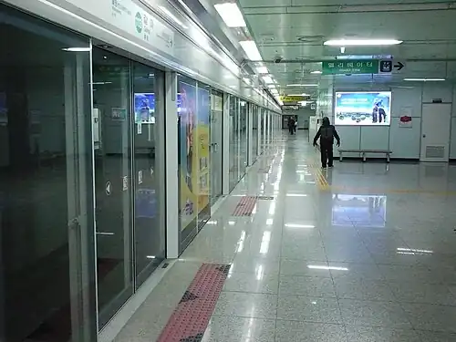 Galma station (Korean: 갈마역) is a station of the Daejeon Metro Line 1 in Galma-dong, Seo District, Daejeon, South Korea. The station is 11.51 kilometres (7.15 mi) from Panam.