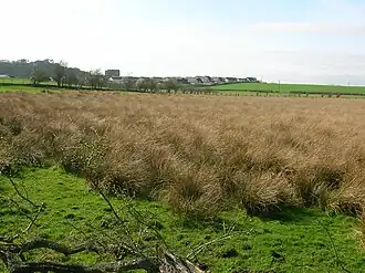 Blaeu's map of 1654, dating from Timothy Pont's survey of circa 1604, shows the loch as a significant body of water, extending towards Gar Rigs (sic), with no inflow and one outflow running down to the Dundonald Burn and eventually into the River Irvine near Shewalton.[6] The farm on the loch's edge is recorded as Mosside. This is the last map to show the loch and this indicates that its drainage took place in the early 18th century. Roy's map of 1747 shows no clear loch, however a habitation recorded as 'Lochend' is present.[7] The OS maps record the farm's name as 'Lochside'.[8]