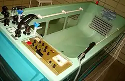 In addition to full galvanic baths, when the patient's body is fully immersed in water, there are also four-chambered galvanic baths (also called four cell galvanic baths), which also combine electrical energy and hydrotherapy, but are used only on the limbs.[1] Patient's forearms and lower legs are put in water trays, and electric current is passed through warm water. This procedure is said to improve the circulation, reduce pain and was considered especially beneficial for rheumatoid arthritis though no studies have been done to confirm these claims.