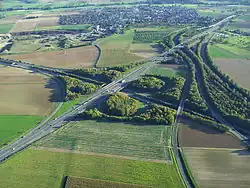 The Gambacher Kreuz (Gambach interchange) is a cloverleaf interchange in Hesse, Germany where the A5 Autobahn from Basel to Bad Hersfeld intersects the A45 between Dortmund and Aschaffenburg.[1] It constitutes a node in the primary route between the Rhein-Main metropolitan area and the eastern end of the Ruhr valley.