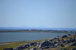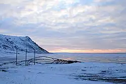 Compared to most northern hemisphere polar climates, Gambell is relatively moderate, featuring only discontinuous permafrost and despite the freezing of the Bering Sea less frigid winters than typical for Asia and North America at similar latitudes. As an example, Iqaluit on the other side of North America averages 9.8 °F or 5.4 °C colder over the year at a similar latitude, and Arviat on northern Hudson Bay 12 °F or 6.7 °C colder despite being two degrees farther south.