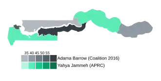 Presidential elections were held in The Gambia on 1 December 2016.[1] In a surprise result, opposition candidate Adama Barrow defeated long-term incumbent Yahya Jammeh.[2][3] The election marked the first change of presidency in The Gambia since a military coup in 1994, and the first transfer of power by popular election since independence from the United Kingdom in 1965.[2]