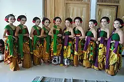 Gambyong (Javanese: ꦒꦩ꧀ꦧꦾꦺꦴꦁ) is a traditional Javanese dance originating from Surakarta, Central Java, Indonesia. It has existed since ancient times, and began to be displayed at the Mangkunegaran Palace in the era of 1916 to 1944. Gambyong became famous for its smooth and graceful dance moves that amazed the audience who watch them.[1][2]