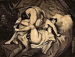 Gamiani, or Two Nights of Excess (French: Gamiani, ou deux nuits d'excès) is a French erotic novel first published in 1833. Its authorship is anonymous, but it is believed to have been written by Alfred de Musset, and it was rumoured that the lesbian eponymous heroine was a portrait of his lover, George Sand.[1] It became a bestseller among nineteenth-century erotic literature.[2]