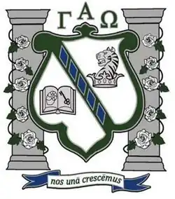 Gamma Alpha Omega's motto is Nos Una Crescemus or "United We Will Grow".[2] Its pillars are honesty, integrity, leadership, scholarship and unity.[2]