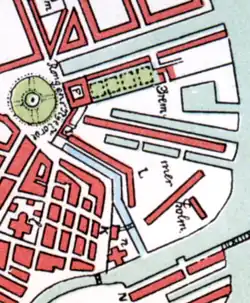 When King Christian IV commenced his modernization of the fortifications of Copenhagen, he extended the city's East Rampart, taking it straight through Bremerholm to the beach. The moat in front of the rampart was later expanded to form the Holmen Canal, which was constructed as a new harbour for the Royal Fleet, replacing the Arsenal Harbour further south.[1]