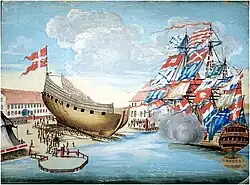 In the beginning of the 16th century land reclamations annexed the island to Zealand[1] and in 1510, under the reign of Hans of Denmark, a naval shipyard was established in the area. A ropewalk at the site is first mentioned in 1555 and an anchor forge was built in 1563.