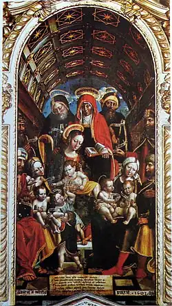Works by his workshop in Asti include the Pelletta Polyptych in the Cathedral, and Adoration of the Magi in the Collegiata of San Secondo and Madonna Enthroned with Saints in church of Santa Maria Nuova. Outside his native city, he painted works such as the St. Peter's Polyptych in Savigliano and a Holy Parents in the Turin City Museum of Ancient Art. (c. 1503).