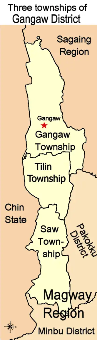 Gangaw District (Burmese: ဂန့်ဂေါ ခရိုင်, Burmese pronunciation: [ɡa̰ɰ̃ɡɔ́ kʰəjàiɰ̃]) is a district of the Magway Division in central Myanmar.