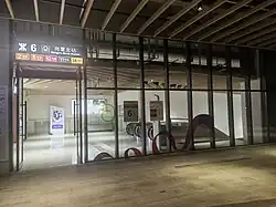 Gangxia North station is an interchange station for Line 2, Line 10, Line 11 and Line 14 of the Shenzhen Metro. Line 2 platforms opened on 28 June 2011,[1] Line 10, Line 11[2] and Line 14 platforms[3][4] opened on 28 October 2022.[5] Measuring 220,000 meters square, it is 1.6 times as large as the nearby intermodal Futian station.[6] It is the second four-line interchange station in the Shenzhen Metro after Chegongmiao station.