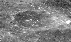 Oblique view of 8 Homeward crater (formerly Ganskiy M) from Apollo 17 panoramic camera