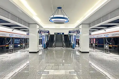Gaojiayuan station[1] (simplified Chinese: 高家园站; traditional Chinese: 高家園站; pinyin: Gāojiāyuán zhàn) is a station on Line 12[2] and Line 14 of the Beijing Subway. The Line 12 station opened on December 15, 2024.[3] Due to the slow and uncertain progress of demolition and relocation of the occupied area for the station equipment buildings, the opening date for the Line 14 station has not yet been determined.[4][5]