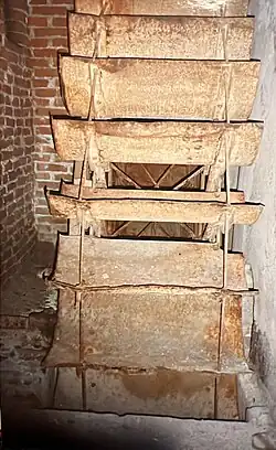 On the northern side are three main buildings: a stable, a dwelling (dating back to the 1940s), and a warehouse for storing materials and machinery. More recent, smaller buildings were erected on the northern side, all dependent on the stable,[65] together with some silos, one of which is ancient.[85]