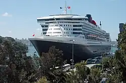 Since 2000 the global cruising industry has been building a number of very large ships, some of which were too large to berth at the Overseas Passenger Terminal at Circular Quay, although modifications were made in 2014 to accommodate some larger vessels.[19] Some large ships are permitted to berth at Garden Island's naval wharves, initially on an ad-hoc basis, followed in 2012 by an agreement to permit three cruise ships to berth per year.[19][20] There have been calls for increased cruise ship access to the naval wharves, with some suggesting that the RAN should relocate entirely.[21][22] Replacing the naval base with a cruise ship terminal would also free up the island to be redeveloped as harbourfront residential housing.[23]