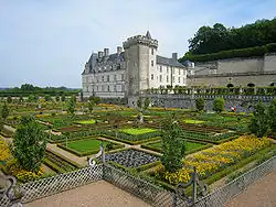 French formal garden and parterre at Château de Villandry in the Loire Valley