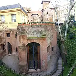 It was one of the main nuclei in a spectacular location at the bottom of the valley dividing the Quirinale from the Pincio. It was supported by thick walls with arches and buttresses resting on the Servian Walls where the Via Sallustiana runs today, and resting against the hill behind and connected to other remains of poorly preserved buildings.