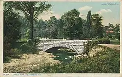 In 1888, the City Council appropriated $10,000 for improvements in the park, including a bridge over Pleasant Run. By 1895 a streetcar line had been extended to the park, allowing easier access. The Board of Park Commissioners was created in 1895 and another $10,000 was appropriated for repairs and to plan and remodel the facilities. The improvements made in prior years had been done haphazardly.[5]