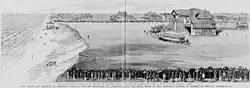 On September 5, 1881, more than half a mile of railroad tracks were laid out in less than 24 hours by local residents when they learned that the president, who was in poor condition, was coming to Long Branch from Washington DC to help him recover from his gunshot wounds. Rather than requiring the president to move by a horse-drawn carriage over rough roads, the tracks enabled Garfield to be brought directly to the front door of the oceanfront Francklyn cottage from the local Elberon train station. The railroad spur ran down the middle of a local road, which today is Lincoln Avenue.[2] President Garfield arrived in Elberon on the evening of September 6.[3]