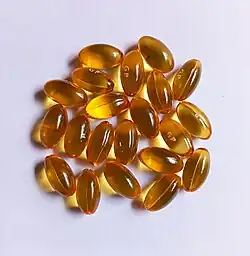 Garlic oil is used as a dietary supplement or digestive aid commonly sold in capsules, which may be diluted with other ingredients.[1][2] Some commercial preparations are produced with various levels of dilution, such as a preparation that contains 10% garlic oil.[6] There is no clinical research confirming health effects of consuming garlic oil.[1]