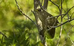 The Taiwan hwamei (Garrulax taewanus) is a passerine bird in the family Leiothrichidae. The species was first described by Robert Swinhoe in 1859. It is endemic to the island of Taiwan. It was formerly regarded as a subspecies of the Chinese hwamei (Garrulax canorus) but has since been split as a separate species. It is estimated to have diverged from the Chinese hwamei about 1.5 million years ago.[3]
