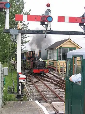The railway is controlled using a comprehensive signalling system operated from two signalboxes – Common lane and Pinesway Junction. Both signalboxes control a mix of semaphore and colour light signals with mechanically operated points.[2]