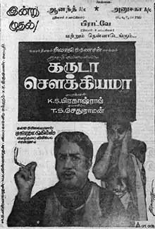 Garuda Saukiyama (transl. Are you fine, Garuda?) is a 1982 Indian Tamil-language crime film, directed by K. S. Prakash Rao and written by Vietnam Veedu Sundaram. The film stars Sivaji Ganesan, Sujatha, Mohan and Thiagarajan.[1] It revolves around a petty criminal who eventually rises to become a feared don. The film was released on 25 February 1982, and became a box-office bomb.