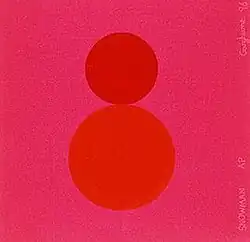 Hume abandoned doors in the mid-1990s, turning to paintings in household gloss paint on aluminium panel, for these often used appropriated images, including pictures of celebrities (e.g. DJ Tony Blackburn) and animals. Their forms and colours are dramatically simplified, with people being reduced to just two or three colours. Snowman (1996), for example, is made up of three shades of red, showing a circle on top of a larger circle against a lighter background. At first, Hume used mainly bright colours, but later pieces have used more muted tones.