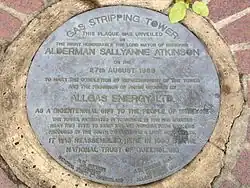 In the same year the stripping tower was acquired by the National Trust of Queensland, who dismantled the structure and stored it pending availability of a suitable relocation site. In 1979, it was reassembled in Davies Park, approximately 150 metres (490 ft) from its original position. In 1988, Allgas Energy Ltd (formerly the South Brisbane Gas & Light Company) refurbished the tower and landscaped the surrounding area, as a bicentennial gift to Brisbane.[1]