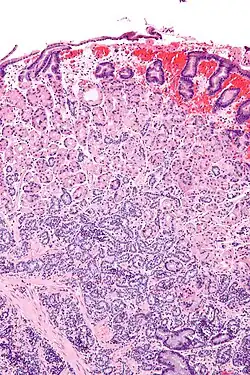 | Micrograph of a neuroendocrine tumour of the stomach. H&E stain. | |
