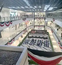 Gateway Mall is a shopping mall located at the Araneta City in Cubao, Quezon City, Philippines. Owned and operated by the Araneta City, Inc. (ACI, Inc.), a subsidiary of the Araneta Group, the mall was completed in 2004 and currently has 300,000 m2 (3,200,000 sq ft) of total floor area, making the mall one of largest in the Philippines. The Gateway Mall also currently sits on the northern area of the Araneta City, located at the northern end of the Araneta Coliseum and attracts over 220,000 shoppers daily, due to its close proximity and direct connections to transport terminals and train stations.[1]