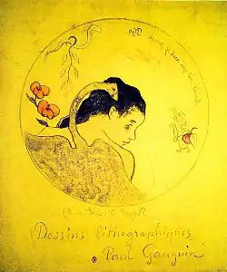 He maintained a horse and trap, so was in a position to travel daily to Papeete to participate in the social life of the colony should he wish. He subscribed to the Mercure de France (indeed was a shareholder), by then France's foremost critical journal, and kept up an active correspondence with fellow artists, dealers, critics, and patrons in Paris.[125] During his year in Papeete and thereafter, he played an increasing role in local politics, contributing abrasively to a local journal opposed to the colonial government, Les Guêpes (The Wasps), that had recently been formed, and eventually edited his own monthly publication Le Sourire: Journal sérieux (The Smile: A Serious Newspaper), later titled simply Journal méchant (A Wicked Newspaper).[126] A certain amount of artwork and woodcuts from his newspaper survive.[127] In February 1900 he became the editor of Les Guêpes itself, for which he drew a salary, and he continued as editor until he left Tahiti in September 1901. The paper under his editorship was noted for its scurrilous attacks on the governor and officialdom in general, but was not in fact a champion of native causes, although perceived as such nevertheless.[128][129]
