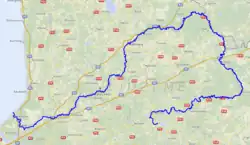 The Gauja River (Estonian: Koiva jõgi, German: Livländische Aa) is a river in the Vidzeme region of Latvia.[1] It is the only large river of Latvia that begins and ends its flow in Latvia. Its length is 460 km, of which 93.5 km (approximately one-fifth) are in Gauja National Park. In this part, the Gauja River flows through the Gauja Valley, which is between 1 and 2.5 km wide, and the maximum depth near Sigulda is 85 m. Thus, the Gauja is the longest river of Latvia if only the parts of the river in the country's territory are counted. The Daugava has only 367 km in Latvia, whereas the entire length of the river is over 1,000 km.
