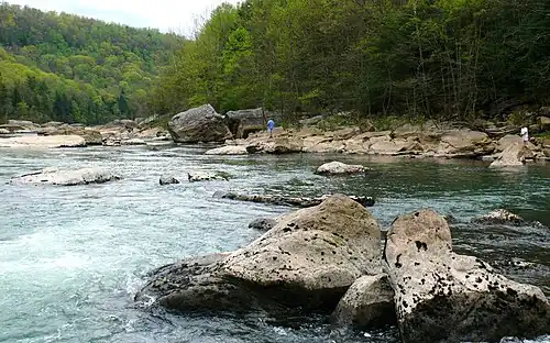 The Gauley River is a 105-mile-long (169 km)[3] river in the U.S. state of West Virginia. It merges with the New River to form the Kanawha River, a tributary of the Ohio River. The river features numerous recreational whitewater areas, including those in Gauley River National Recreation Area downstream of the Summersville Dam.