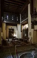 Stairways were not a familiar feature in Islamic architecture. In fact, they were only used in houses. On the main stair walls, a series of Persian Kashan, also known as velvet prayer-hangings, are hung.[13]