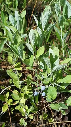 Gaylussacia nana, the dwarf dangleberry or Confederate huckleberry, is a plant species native to the coastal plains of the southeastern United States. It has been reported from Louisiana, Alabama, Mississippi, Georgia, Florida, North Carolina and South Carolina.[3] It is found in either wet or dry soil, in woodlands, bogs, sandy ridges and savannahs, usually at elevations less than 100 m (330 feet).[4]