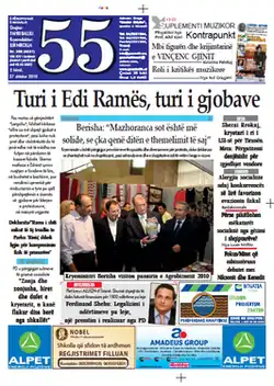 Gazeta 55 (English: Newspaper 55) is an Albanian language newspaper published in Tirana, Albania. The newspaper is a politically unaffiliated daily, with nine reporters on staff records. The tabloid's owner is Fahri Balliu, an Albanian businessman.[1]