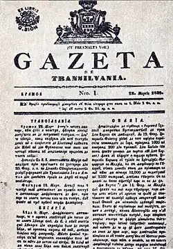 ![]() First edition of Gazeta de Transilvania, March 12, 1838 | |