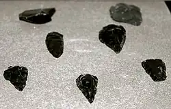 A large number of archaeological materials were found in the cave during the research. More than 17,000 unearthed fauna fossils were examined by D.V.Hajiyev and S.D.Aliyev and it was found out that they contained 24 species of fauna, some were used as tools. In addition to fauna fossils, 874 stone tools were also discovered in the cave. Among them there were 780 obsidians, 93 flints, and 1 tuff tools. Despite the fact that the obsidian reserve is located in Kalbajar mountains, the research has revealed that these stones were collected by cave dwellers from the bed of Arpachay.[4] The form of the tools is similar to those derived from Azokh and Tağlar caves. The presence of several hearths in a small area in the cave indicates that primitive people living in Gazma utilized fire and lived here for a long time. During the Mousterian culture period, hunting played a particular role in the lives of Gazma inhabitants.[5]