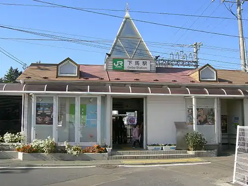 Geba Station (下馬駅, Geba-eki) is a railway station in the city of Tagajō, Miyagi Prefecture, Japan, operated by East Japan Railway Company (JR East).