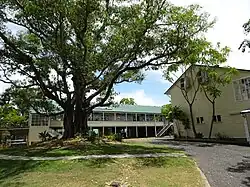 Mature fig trees (Ficus sp.) stand to the east of Block D and southeast of Block C, and a group of four mature mango trees (Magnifera indica) stand near the southeast corner of the school site.[1]
